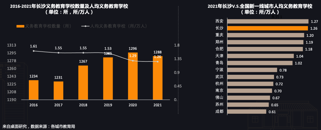 作为湖南的省会城市,长沙的教育资源非常丰富,仅高校就有湖南大学、中南大学、长沙理工等名校闻名在外,基础教育近几年也有极大的发展。报告显示,长沙人均义务教育学校数量在全国新一线城市中排名第二位,仅次于西安,远高于成都和杭州。