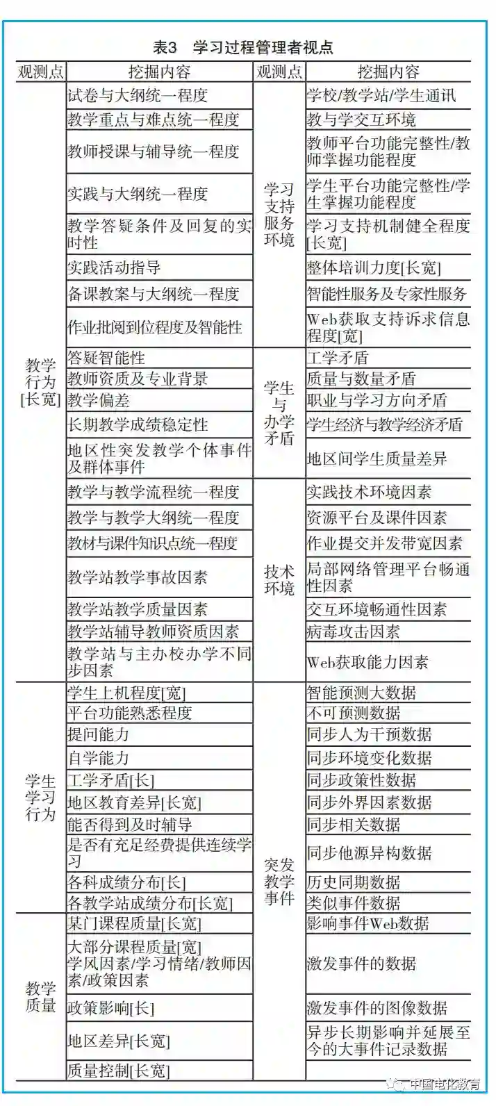 教学数据视点是从科学的角度提出的,它描述了教育研究者或者需要研究某个方向和目标的工作人员所要完成的任务,它根据需求给出了不同角度、不同位置、不同任务和不同级别的事件因素的观测点和数据的获取点。