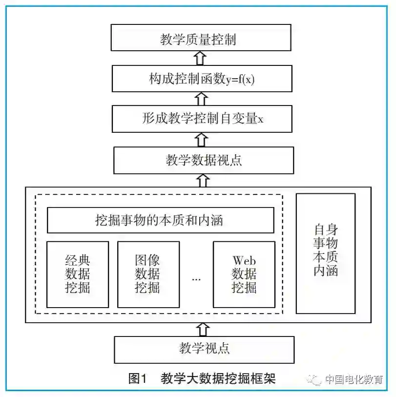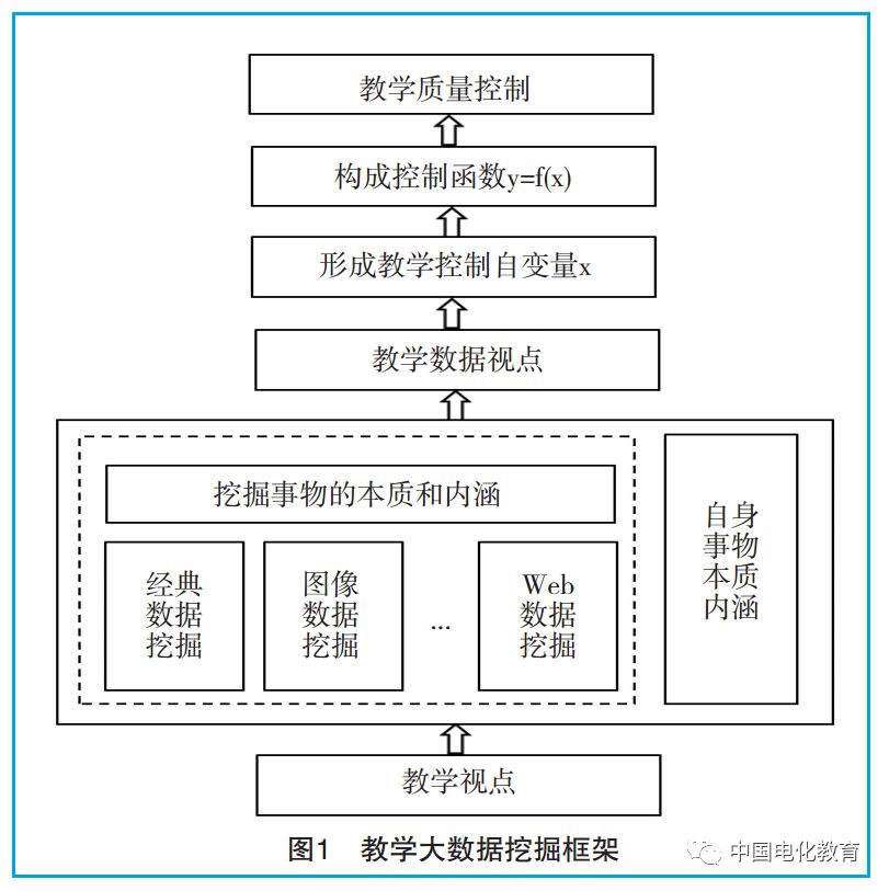 研究的态度和研究视点决定了观察问题的角度和对问题的剖析度。教学数据挖掘是一个将来自各种教育系统的原始数据转换为有用信息的过程,这些有用信息可为教师、学生、教育研究人员以及教育软件系统开发人员所利用[9]。教学大数据挖掘应该站在教学的视点,从教学中不同的角色出发,从教学角色所关心的问题出发,通过对教学事件的影响因素及数据的分类研究,借助于不同的挖掘手段和挖掘方法,针对扩展的多源异构数据源,挖掘出事件与教学质量的关系规律,从而实现教学质量的控制。
