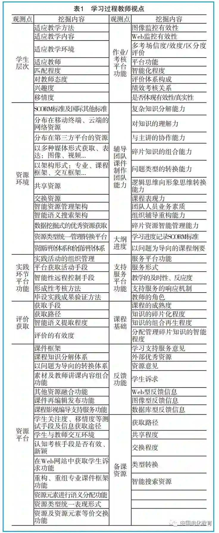 教学大数据是在多元异构、不连续、易干扰环境下形成的经典数据与非经典数据的复杂集合。该文从教学大数据挖掘的观点出发,增加Web数据和图像数据,对传统的挖掘数据源进行扩展;提出教学观点和数据观点的概念,并基于此构建可教学数据挖掘框架;以远程教学过程为例,从教师、学习者、管理者、资源设计、教学事件处理等不同的视点提出了数据挖掘的相关因素。通过多种数据源的挖掘处理方法的研究完成相应观点下事件的因果关系及相关关系的分析,为教学数据挖掘提出了新的思路和策略,为教学质量提出了一种可行的方法。