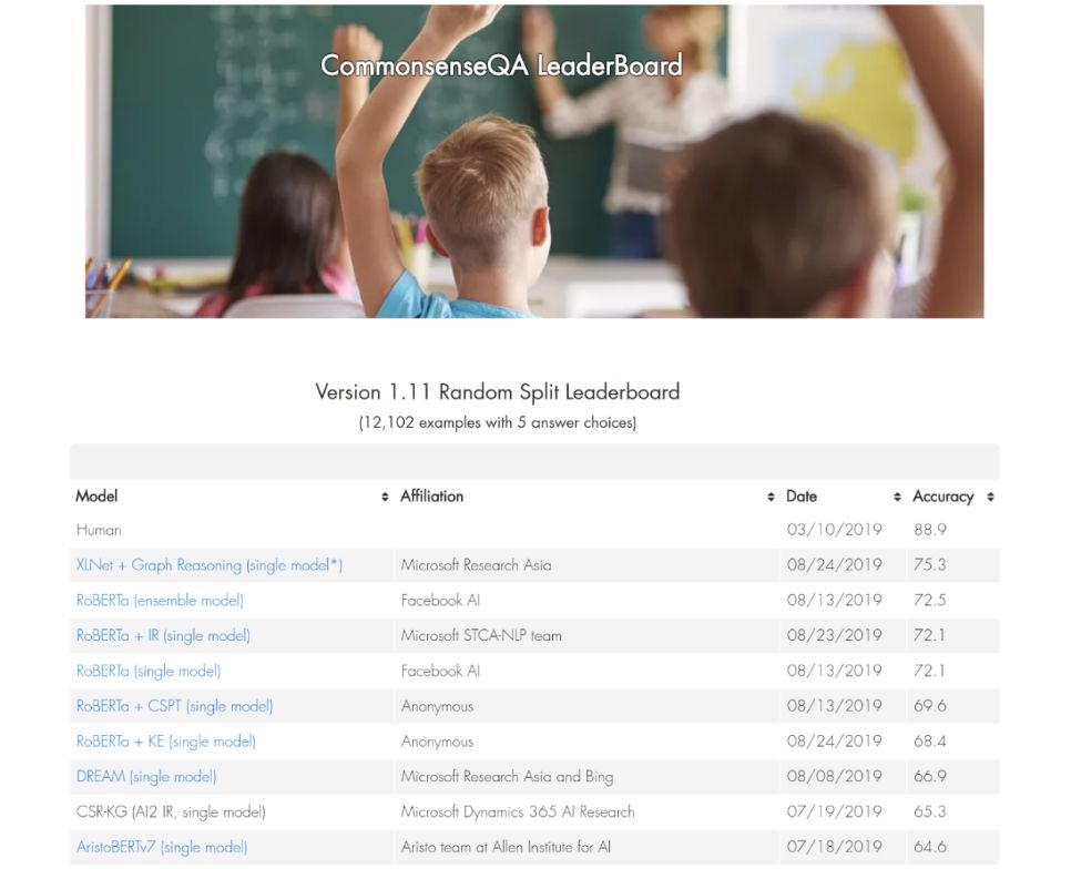 CommonsenseQA 任务排名结果:https://www.tau-nlp.org/csqa-leaderboard