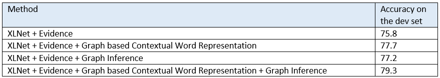 图1:我们的方法(XLNet+Graph Reasoning)目前在以色列特拉维夫大学常识问答任务 CommonsenseQA 上排名第一