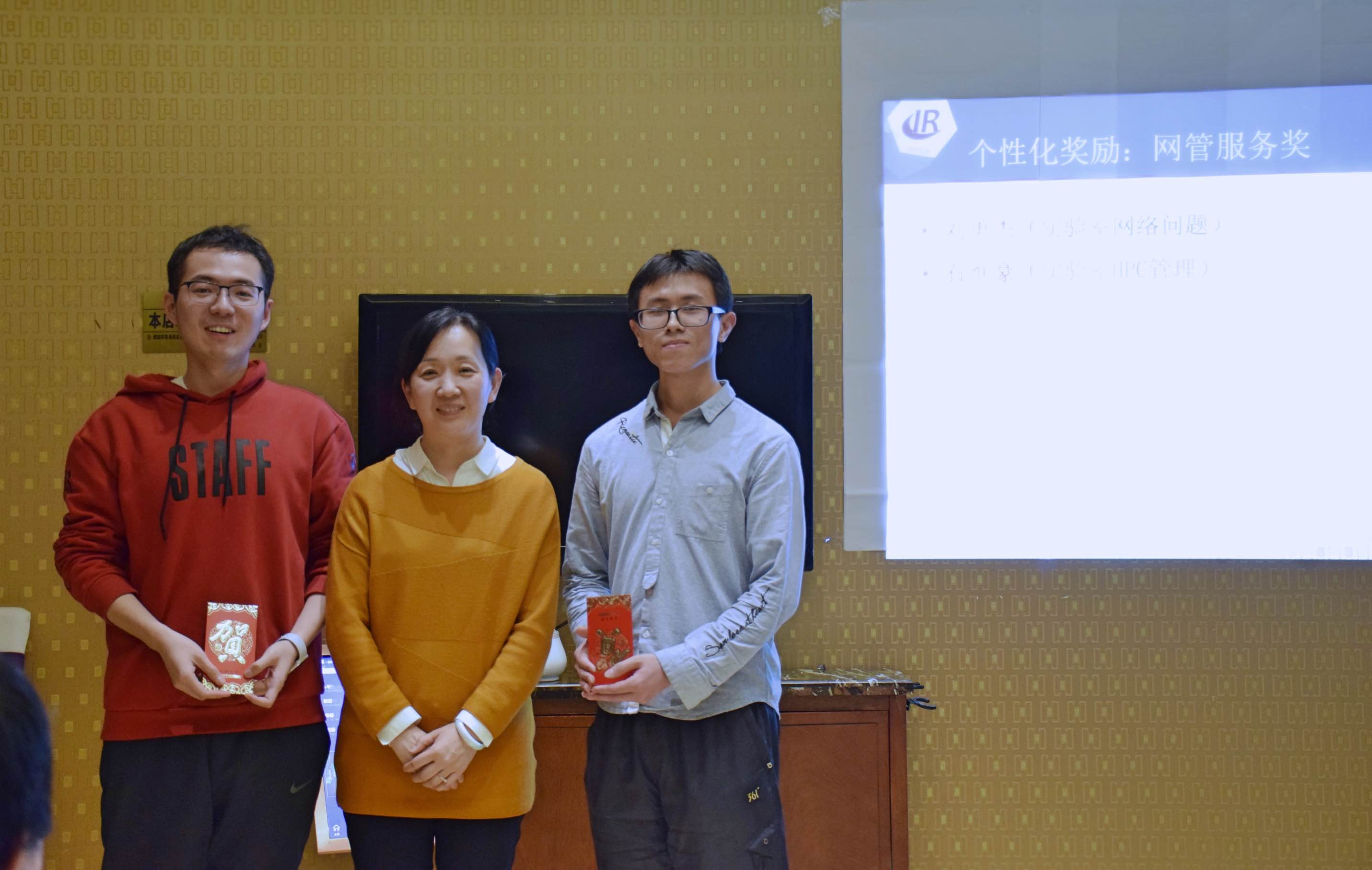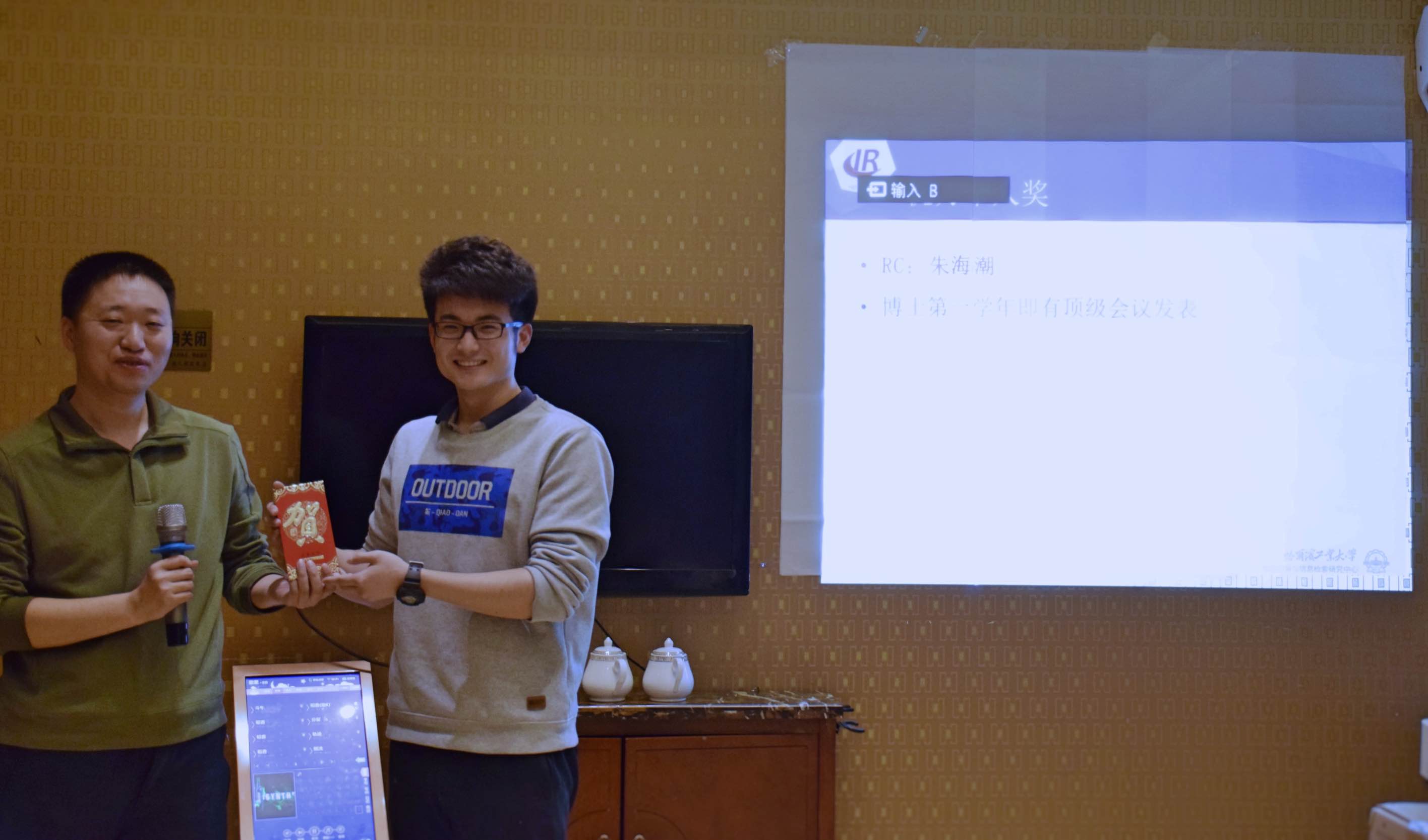 紧接着,颁发2017年度优秀个人奖。各研究组组长综合组内学生在过去一年的表现,对成绩尤为突出的同学进行表彰和奖励,并由各位老师为获奖同学颁奖。今年增设了个性化奖励,为那些对实验室做出积极贡献的同学进行表彰和奖励,并由中心副主任秦兵教授亲自颁奖。