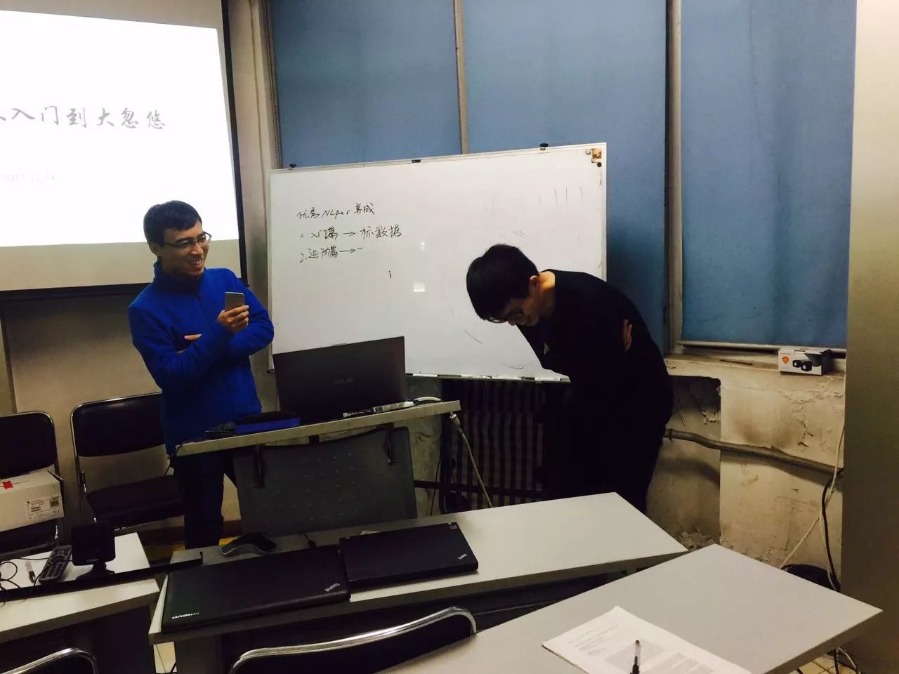 首先,由中心主任刘挺教授上台讲话,进行哈工大社会计算与信息检索研究中心2017年度工作总结。刘挺教授为新入实验室的同学特意从实验室的历史,实验室的技术理想——理解语言,认知社会的由来讲起,全面而详细的介绍实验室研究组与研究方向。接下来对实验室的师资队伍,科研项目,学术活动,人才培养等进行总结,对过去一年取得的成果表示肯定,并强调说,实验室秉承“顶天立地”的理念,不仅要做最前沿的研究还要与业界积极合作,既不要只重视论文,不开展企业合作;也不能只做项目,不做研究。接着,再次提起,实验室的师生应该改变常有的“落后”心态,一个问题,只要认为可以做,就去做,不要等着国外学者做了,才开始跟着做。应该有着“领跑”的心态,在未来五年,中国在自然语言处理领域的研究水平就会与国外共同领先,未来十年,就会进行超越。刘挺教授卓尔不群的思想,高屋建瓴的分析深深震动着全体师生。