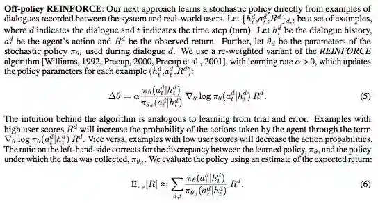 In conclusion, the two policies Q-learning AMT and Off-policy REINFORCE have demonstrated substantial improvements over all other policies. Further, the Q-learning AMT policy achieved an average Alexa user score substantially above the average of the all teams in the Amazon Alexa competition semi-finals. This strongly suggests that learning a policy through simulations in an Abstract Discourse MDP may serve as a fruitful path towards developing open-domain socialbots. The performance of Off-policy REINFORCE suggests that optimizing the policy directly towards user scores also may serve as a fruitful path. In particular, Off-policy REINFORCE obtained a substantial increase in the average number of turns in the dialogue compared to the average of all teams in the semi-finals, suggesting that the resulting conversations are significantly more interactive and engaging. Overall, the experiments demonstrate the advantages of the ensemble approach, where many different models output natural language responses and the system policy selects one response among them. With more interactions and data, the learned policies are bound to continue improving。