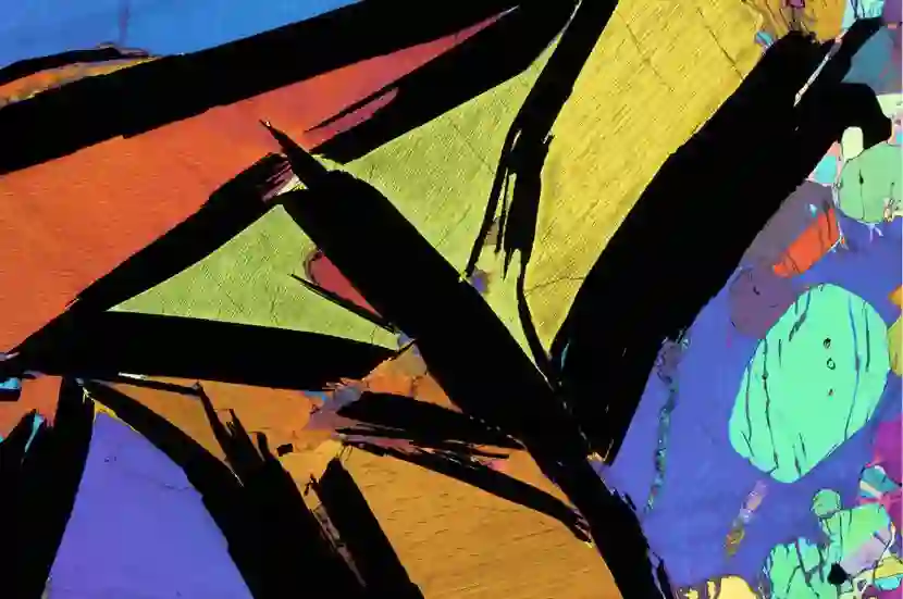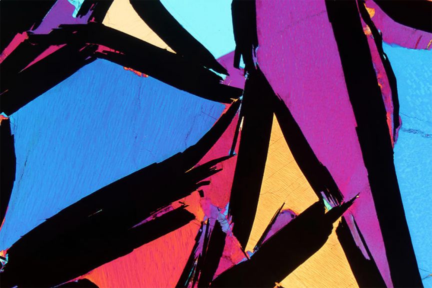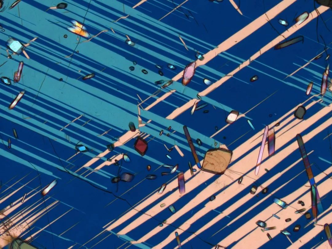 你会对它的来源大吃一惊。实际上,它是石墨颗粒,对就是铅笔里的石墨在偏振光下的样子。