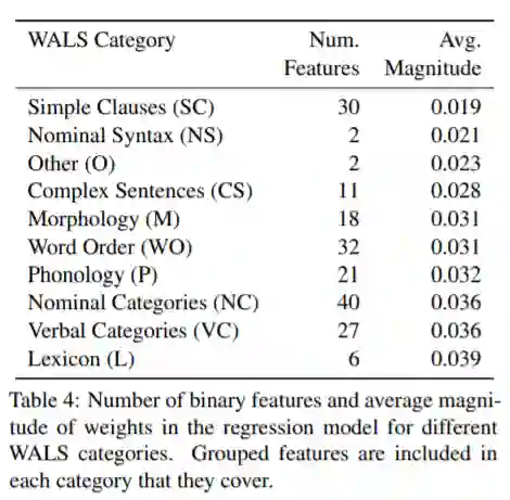 模型的输入是特定语言的语言学特征(属性),输出是稳定性的均值。在讲特征输入模型前,作者做了相应的数据预处理,包括过滤出现频次较低的特征和属性(WALS)以及属性较少的语言,特征分组等,这里就不详细说明了。