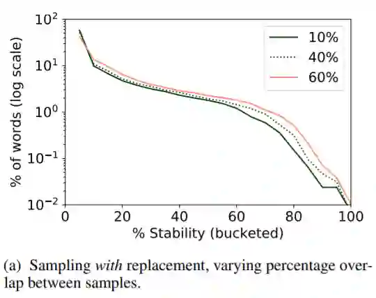 在介绍论文之前,先让我们来了解下词向量的稳定性。词向量的稳定性指的是一个词在不同的向量空间中的最近邻的重叠程度,常用来衡量由数据集、算法和词的属性特征的变化引起的词向量的变化。