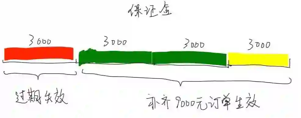 第二次让他补缴6000元的保证金,否则上一笔3000元会失效。