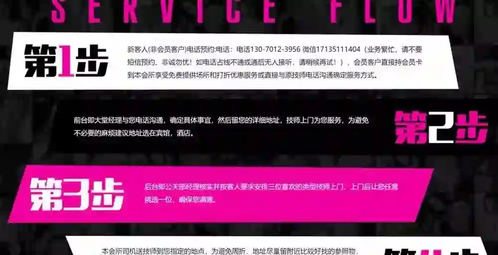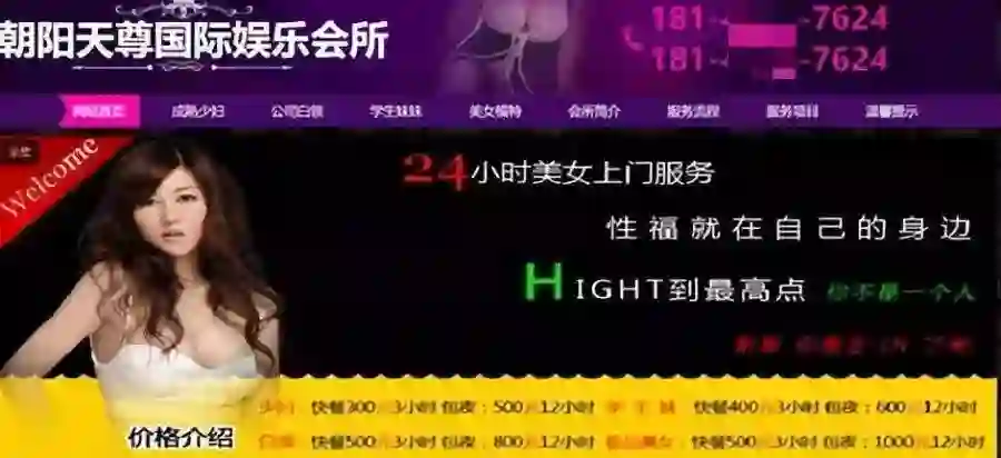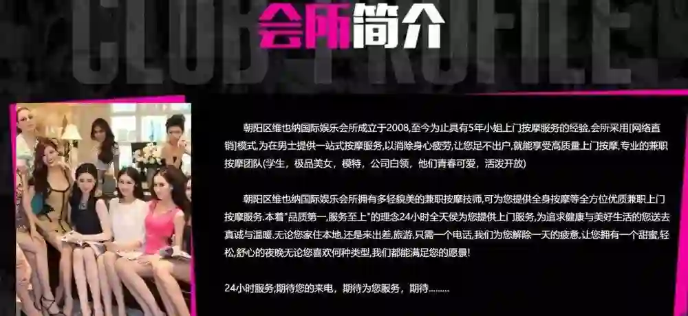 网址经过一次跳转后,来到了一个名叫“朝阳天尊国际娱乐会所”的网站,里面看着很“专业”,不仅有详细的会所简介、服务流程,还有一些“温馨提示”引导第一次进来的网友。