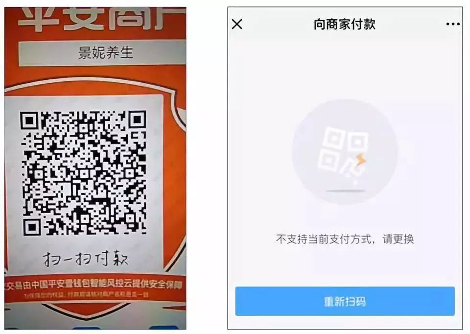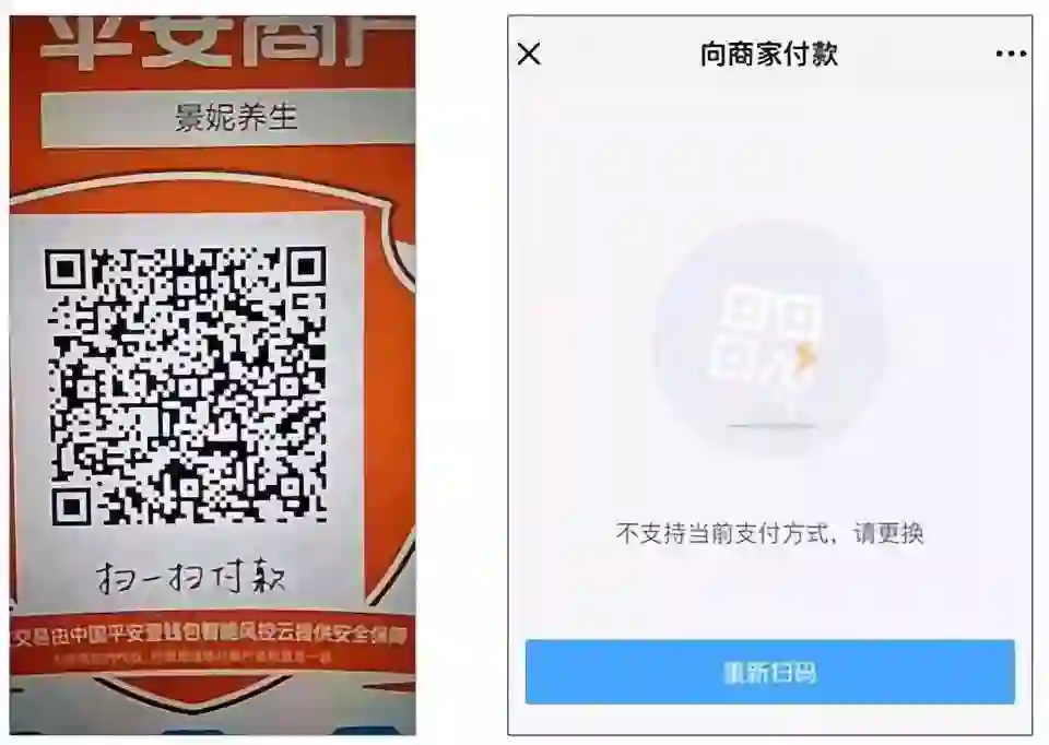 之前骗走我一万多的收款二维码,扫进去也提示“不支持当前支付方式”。