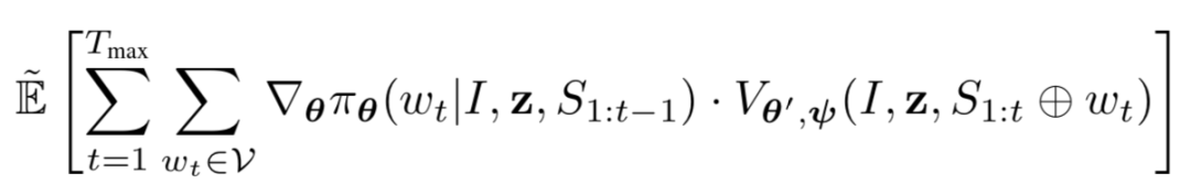 这里具体使用的是蒙特卡洛采样方式,t 时刻之前的是真实生成的结果,之后的是通过采样法得到的结果。总的梯度可以表示为如下公式,具体解释详见论文。