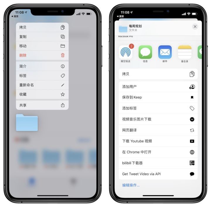 如字面意思,你只要点击「文件」应用进入 iCloud 文件界面,长按任意一个文件夹图标,就会在弹出列表中看到「分享」的选项。