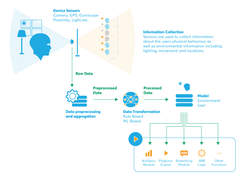 在 Bitmovin的视频感知功能中,系统在完成判断之后,还会驱动各个功能模块进行动作,比如播放调整、控制广告等等。