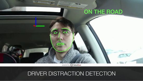 除了商业用途,还有不少有意思的应用场景。比如卡内基·梅隆大学的研究人员,就用 IntraFace来进行分心状态检测。一旦驾驶员在开车时去哄孩子、接电话等,就会遭到软件的警告。