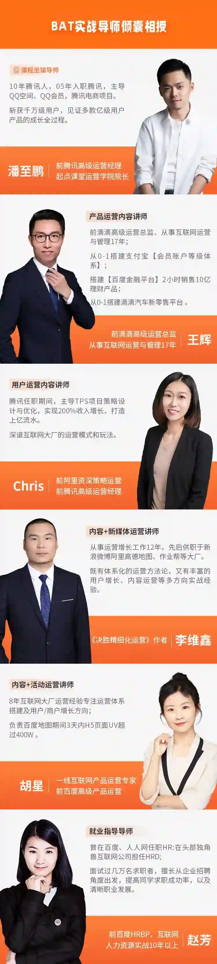 在90天运营实战班中,你可以和5位平均在大厂工作10年+的资深运营、1位13年经验的HRBP做朋友。