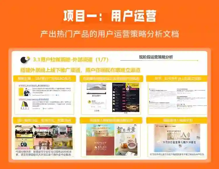 《90天互联网运营实战班》课程内可以让大家实操6个一线大厂真实项目,导师还会对你的项目进行16次批改、指导。