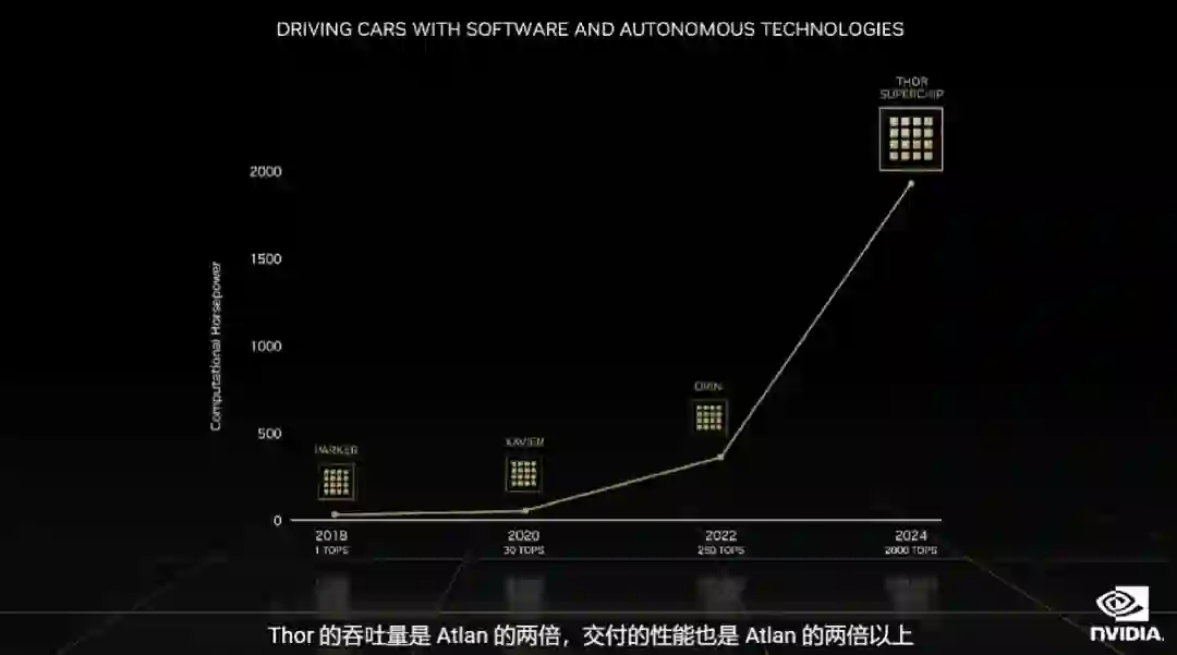在自动驾驶领域,车企都需求更强的算力,而英伟达产品的每代性能都要翻倍。