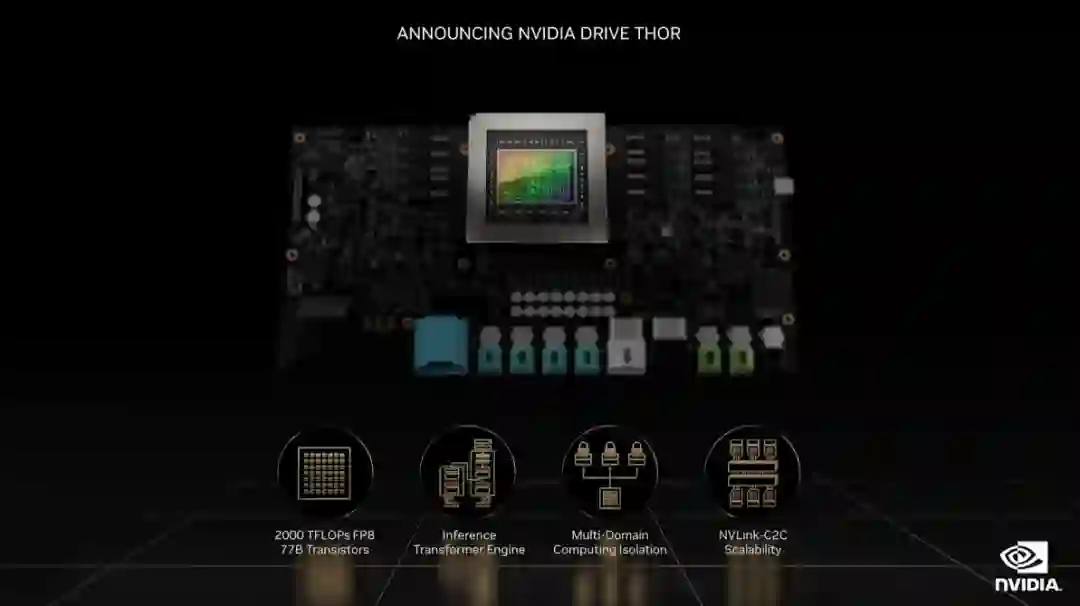 此外,Thor 还集中了众多计算资源,降低成本与功耗的同时实现功能飞跃。目前,汽车的停车、主动安全、驾驶员监控、摄像头镜像、集群和信息娱乐均由不同的计算设备控制。而未来,这些功能将不再由单独的计算设备控制,而是由在 Thor 上运行、并随时间推移不断改进的软件统一控制。