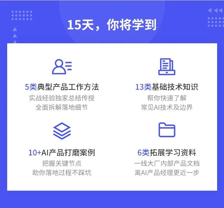 《15天入门AI产品经理》即将于4月2日开课,录播课程报名即可开启学习。早鸟优惠最后一天,报名立减100元!