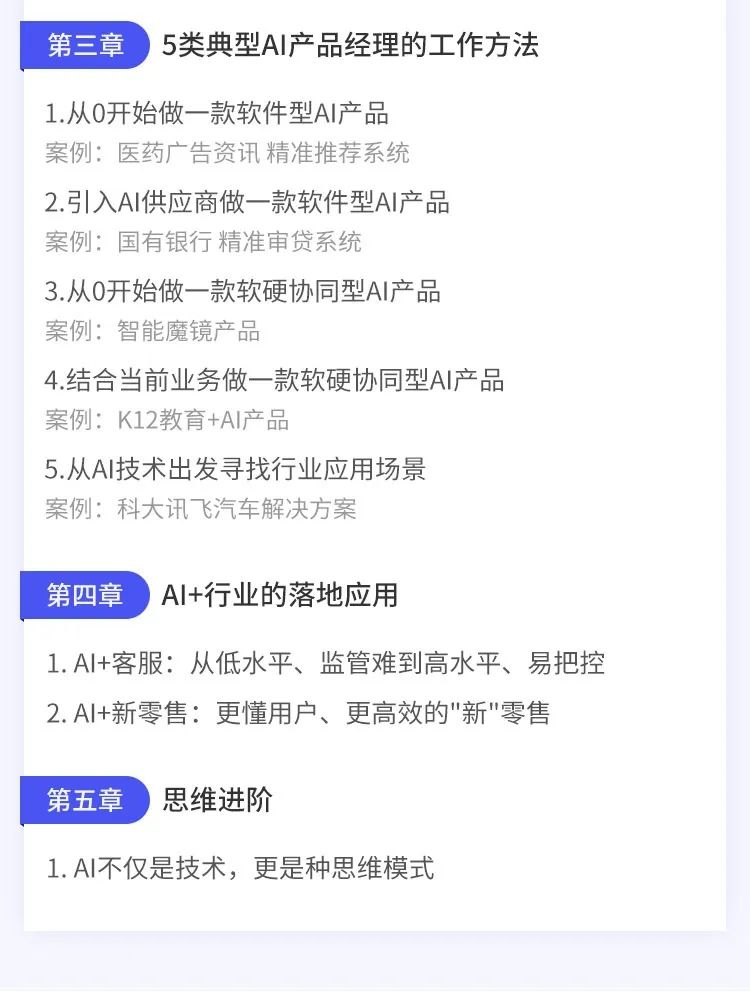 • 掌握5大类典型需求场景下的AI产品经理工作方法