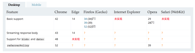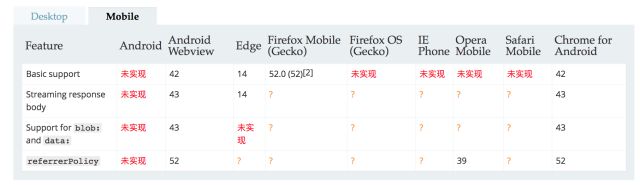 fetch原生支持性不高,不过可以使用一些polyfill。