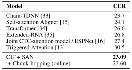 为解决经典的注意力语音识别模型不支持在线识别、边界定位等问题,中科院自动化所董林昊博士、徐波研究员将脉冲神经网络中的整合发放思想进行连续化,提出一种低复杂度并具有单调一致性的序列转换机制——连续整合发放(Continuous Integrate-and-Fire,CIF)。基于CIF的模型不仅有效地支持了在线识别、边界定位及声学 Embedding 提取,而且在两个中文基准语音识别集(HKUST、AISHELL-2)上创造了SOTA的性能。相关成果被ICASSP 2020录用为Oral论文。