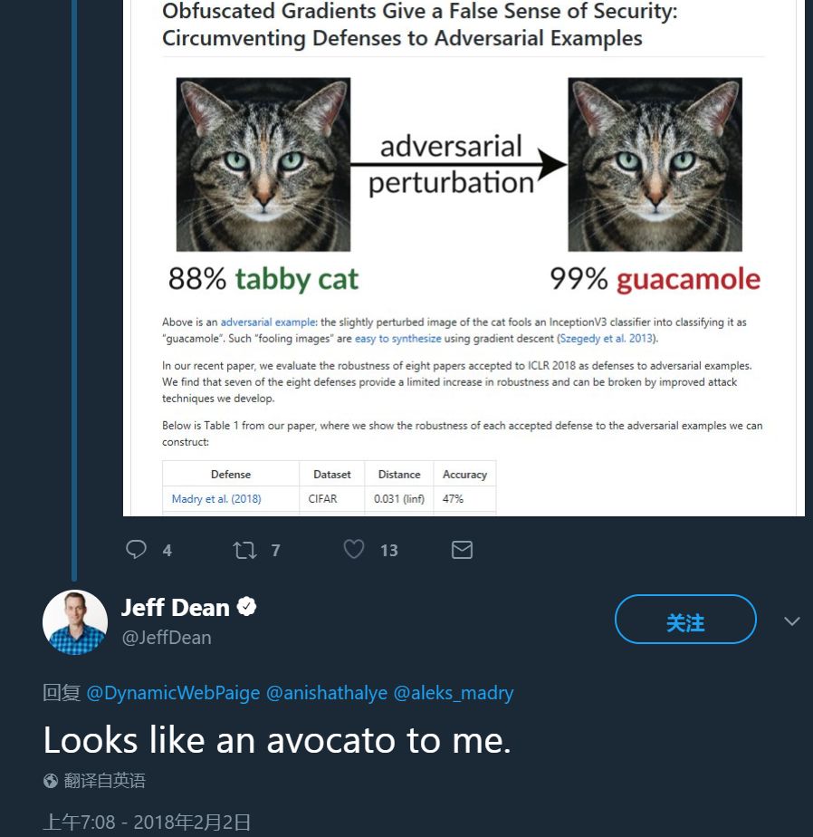 该研究也引发了谷歌大脑负责人 Jeff Dean 的关注与吐槽:「这看上去确实是鳄梨啊。」