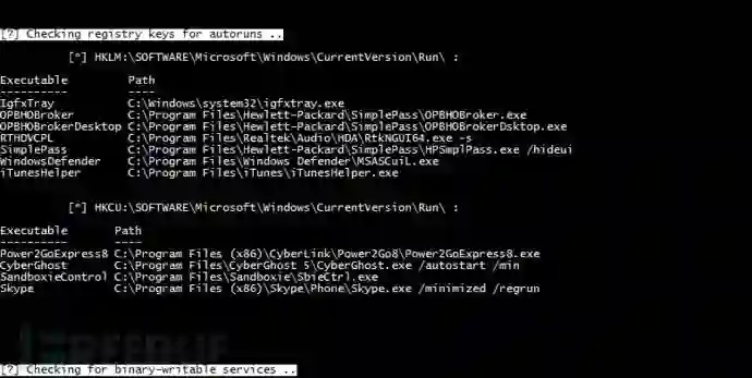 上图显示,脚本为我们枚举出了开机自动运行的软件服务。