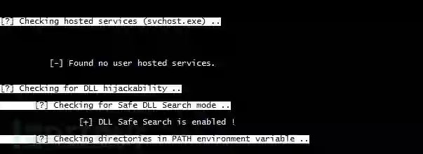 上图显示,脚本为我们检查了DLL是否可被劫持以及托管服务的状态。