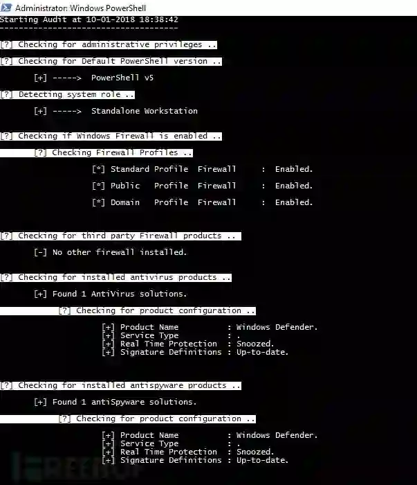上图显示,脚本为我们识别出了防火墙和杀毒软件,并启用/禁用其功能。