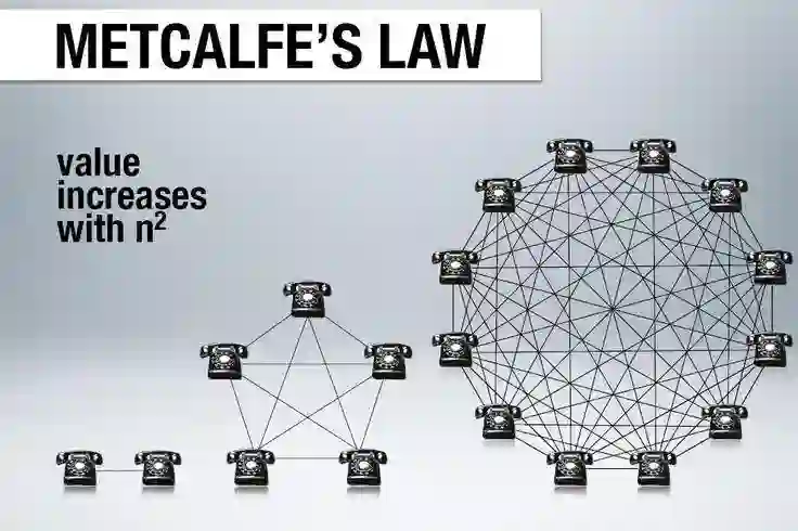 前文已经提到过了,在网络效应之下,网络的价值和这个网络节点数的平方成正比。