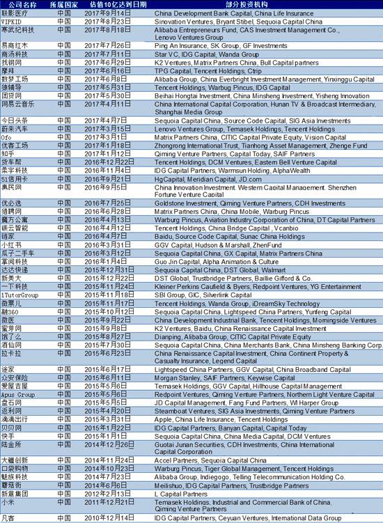 榜单以10亿美元公司为考核基准,共有214家创业公司入围,总体估值约7450亿美元。其中,中国共有55家企业上榜,滴滴、小米和陆金所挤入非美地区最受瞩目的独角兽公司前10名。
