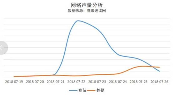 这起事件从7月21日发酵,在7月23日就开始逐渐降温,大约两三天的热度,而通常热点事件会维持热度一个星期左右,这与强力部门迅速对长生生物进行执法,官方媒体批判疫苗涉事企业和监管,而不是极力为自己辩护是有关系的。