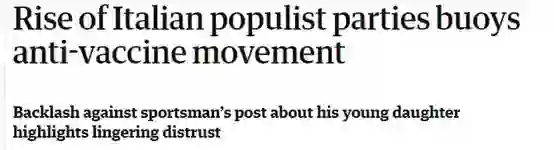 英国卫报2018年7月11日的报道,意大利排球国家队队员Zaytsev在Instagram上面晒了一张自己女儿的照片,他的女儿刚刚接种了疫苗,因此他夸赞自己的女儿很勇敢,结果遭到了不少评论诅咒和攻击他女儿会因此得病。