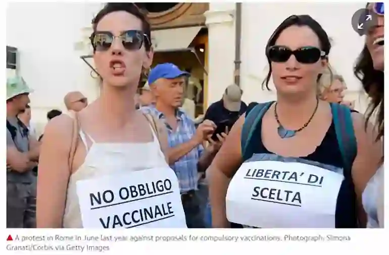 下图是2017年罗马的抗议活动,意大利人反对在全国强制接种疫苗