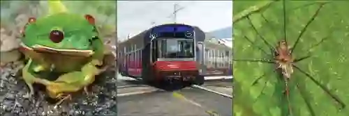 毫无疑问,这三幅图展示的都是时钟,但区别于现实中的实物,这些钟更像人梦里的场景:诡异的字母、多余的指针。负责任的说,这些是BigGAN生成图像中的常见问题,它不能学习数据集里的各种字母和字符,再加上GAN本身不提供计数功能,所以我们经常能在里面发现有很多条腿的蜘蛛和眼睛长太多的青蛙,有时还可以看到有两个火车头的火车。