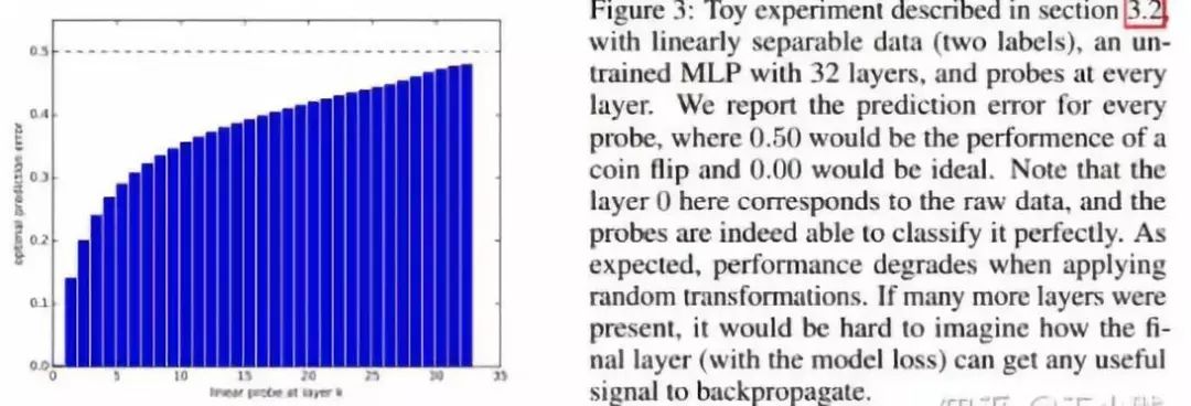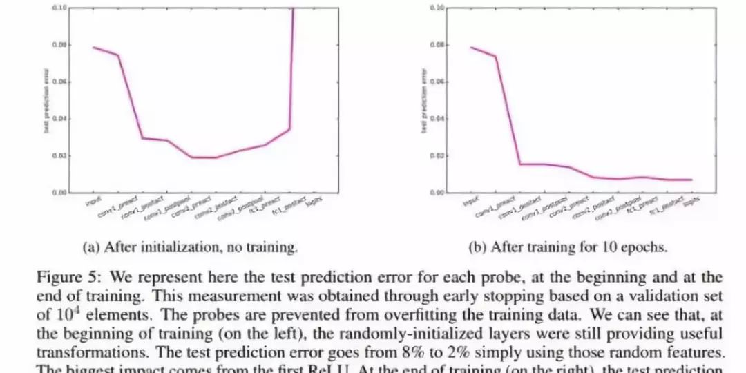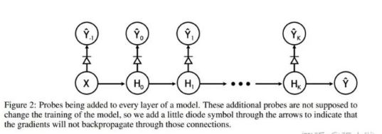 对于神经网络来说,隐层的数量永远都是一个玄学,我们如何理解隐层的数量和模型性能之间的关系呢?Bengio在2016年还做过一个工作《Understanding intermediate layers using linear classifier probes》。这篇文章的思路非常简单,就是通过在每个隐层中添加一个线性探针来测试隐层的表征性能。什么是线性探针呢?也很简单,就是以每个隐藏层为输入,判别的label为输出建立一个逻辑回归模型,通过评估模型的准确率我们就能得到隐层在整个训练过程中以及训练结束之后表征性能的变化。