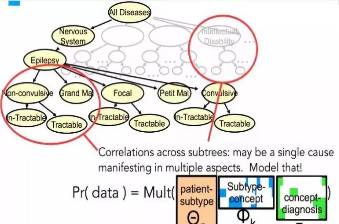 基于稀疏性的方法主要是利用信息的稀疏性特质,将模型尽可能地简化表示。比如如下图的一种图稀疏性的LDA方法,根据层次性的单词信息形成了层次性的主题表达,这样一些小的主题就可以被更泛化的主题所概括,从而可以使我们更容易理解特定主题所代表的含义。