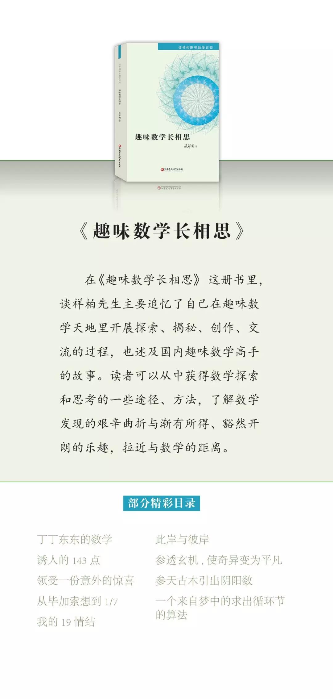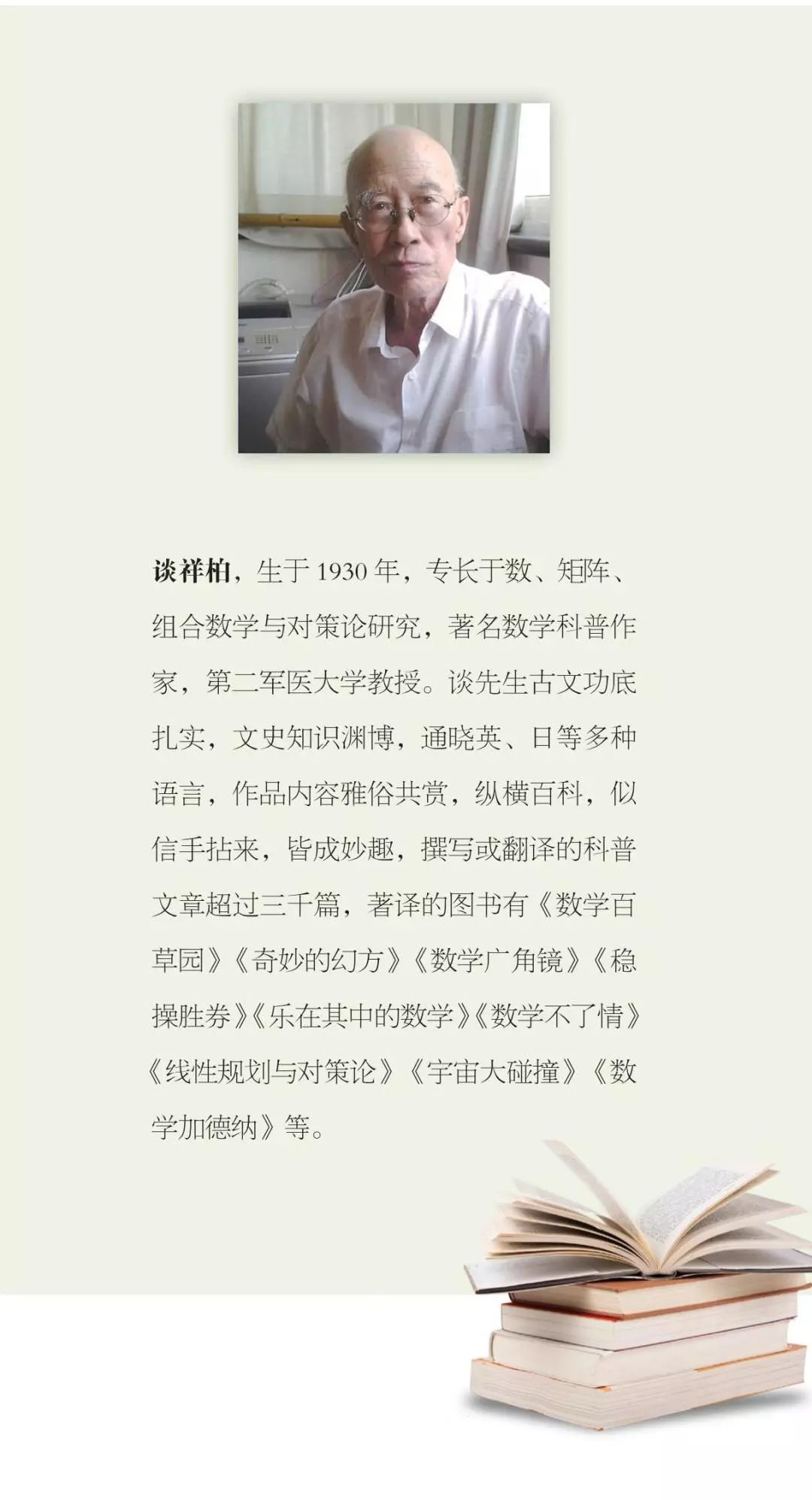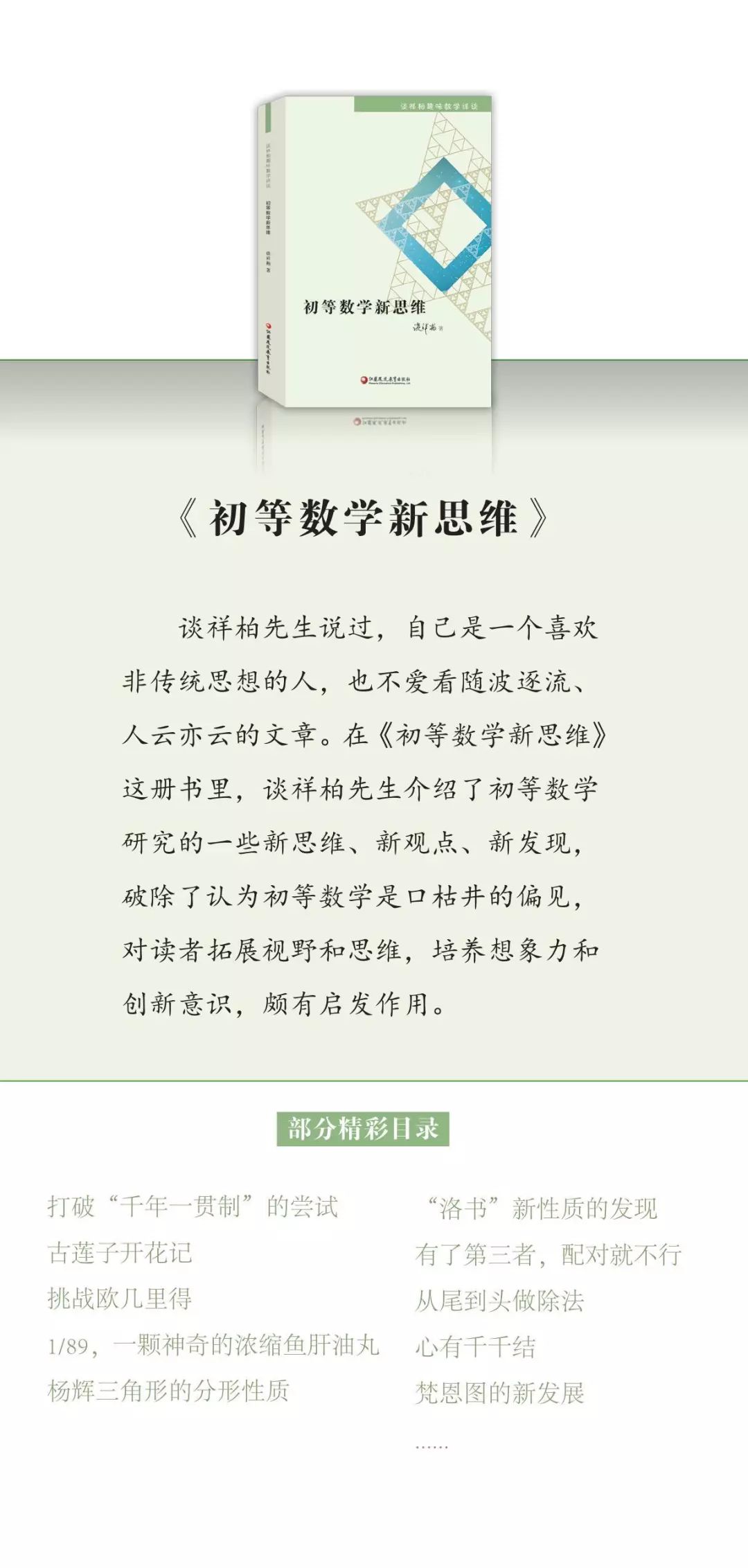 丛书中大部分作品系首次结集出版,所有作品经过深入研究、系统整理和精心编校。尤其是谈祥柏先生发表在《科学》《科学画报》《小学数学教师》《教育研究与评论》等期刊上的文章,对于一些类别自然数的本性的研究,对于数学与科学、文史、艺术关联性的探求,对于许多趣味数学内容背景的发掘等,深入而独特,兼具学术性、趣味性和人文性,令人回味无穷, 脑洞大开,对于广大中小学师生增进数学兴趣、拓展数学思维、提高数学素养、培养创新意识大有裨益。