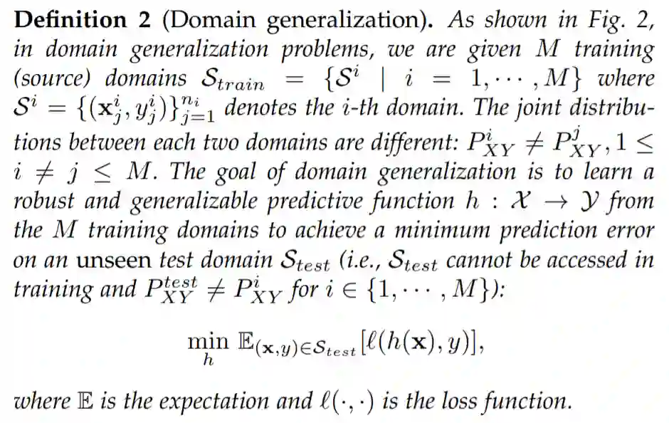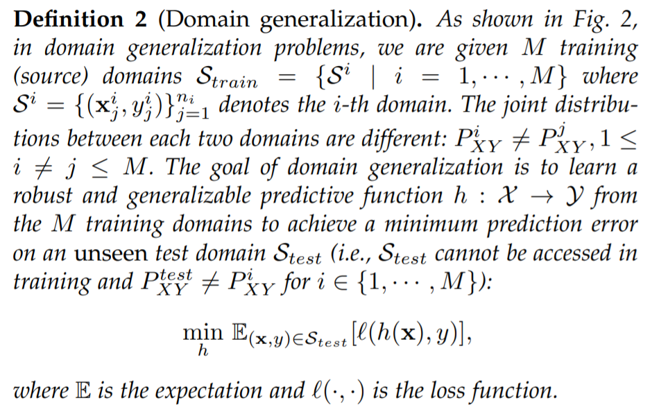 领域泛化问题的示意图如下所示,其形式化定义如下: