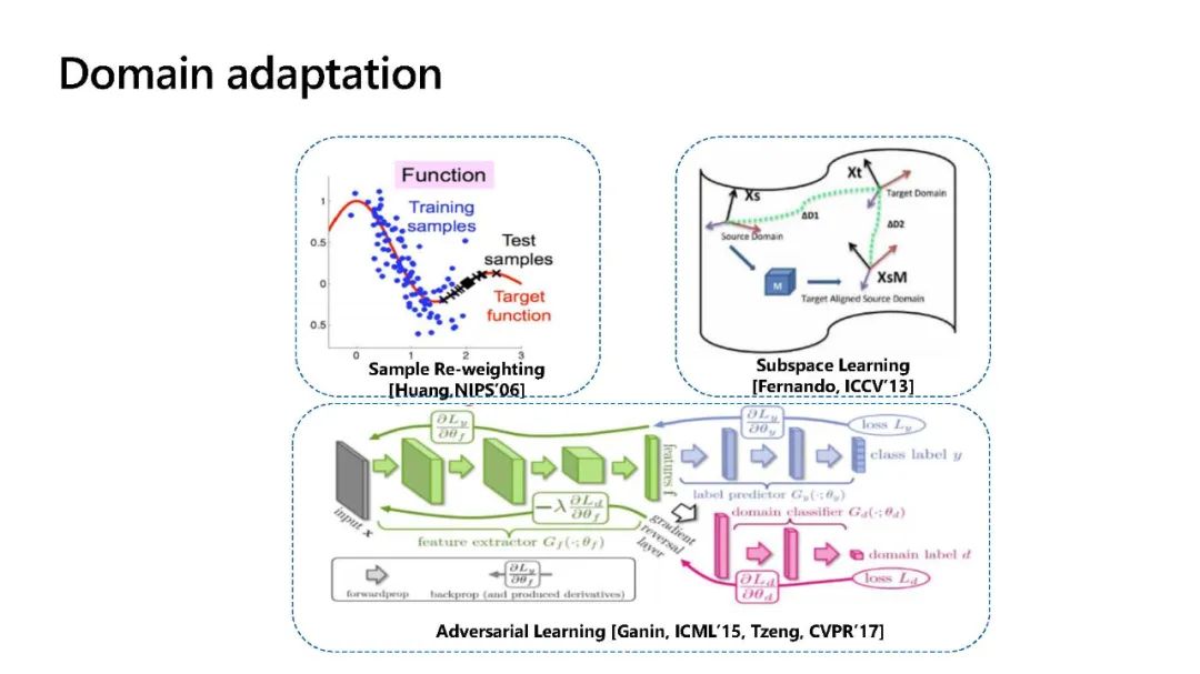 表征学习,指的是学习领域不变特征(Domain-invariant representation learning)以使得模型对不同领域都能进行很好地适配。领域不变特征学习方面主要包括四大部分:核方法、显式特征对齐、领域对抗训练、以及不变风险最小化(Invariant Risk Minimiation, IRM)。特征解耦与领域不变特征学习的目标一致、但学习方法不一致,我们将其单独作为一大类进行介绍。