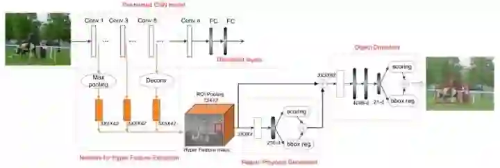 2016 年清华大学提出 HyperNet 算法,其利用网络多个层级提取的特征,且从较前层获取的精细特征可以减少对于小物体检测的缺陷。将提取到的不同层级 feature map 通过最大池化降维或逆卷积扩增操作使得所有 feature map 尺寸一致,并利用 LRN 正则化堆叠,形成 Hyper Feature maps,其具有多层次抽象、合适分辨率以及计算时效性的优点。接着通过 region proposal generation module 结构进行预测和定位,仅保留置信度最高的 N 个样本框进行判断。