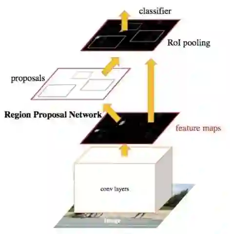 为了解决 Fast R-CNN 算法缺陷,使得算法实现 two stage 的全网络结构,2015 年微软研究院的任少庆、何恺明以及 Ross B Girshick 等人又提出了 Faster R-CNN 算法。设计辅助生成样本的 RPN(Region Proposal Networks)网络,将算法结构分为两个部分,先由 RPN 网络判断候选框是否为目标,再经分类定位的多任务损失判断目标类型,整个网络流程都能共享卷积神经网络提取的的特征信息,节约计算成本,且解决 Fast R-CNN 算法生成正负样本候选框速度慢的问题,同时避免候选框提取过多导致算法准确率下降。但是由于 RPN 网络可在固定尺寸的卷积特征图中生成多尺寸的候选框,导致出现可变目标尺寸和固定感受野不一致的现象。