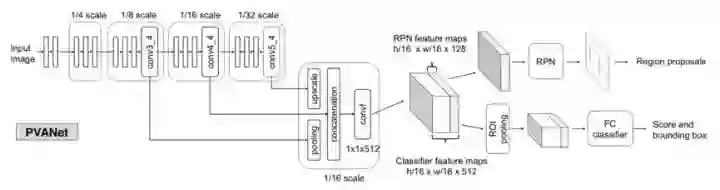 PVANet 应用多尺度特征级联最大化目标检测任务的多尺度性质,权重衰减策略采用一定迭代次数内 loss 不再下降,则将学习速率降低常数倍的方式,通过 batch normalization 和 residual 连接实现高效的训练。