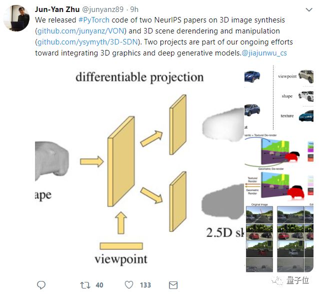 这两篇论文,都与3D图像有关,都被NeurIPS 2018大会收录了。朱俊彦在Twitter上说,是他们团队整合3D图像和深度生成模型工作的一部分。