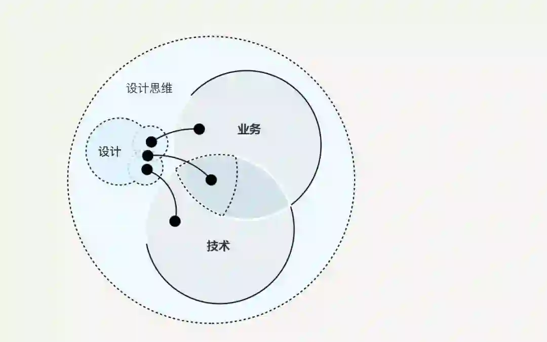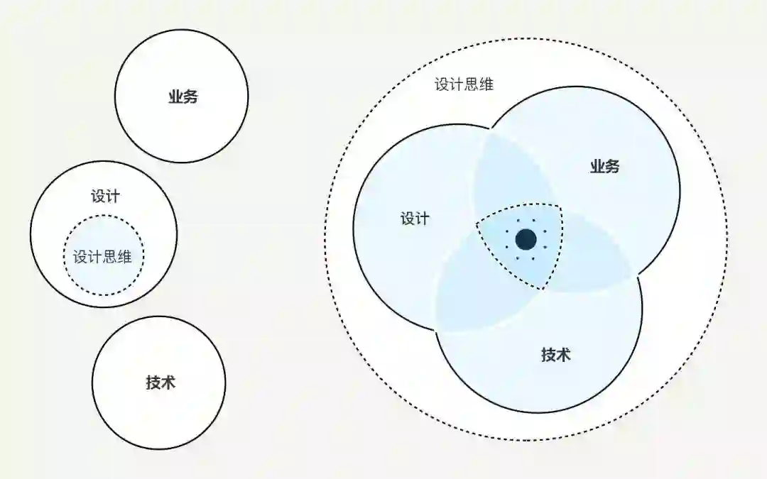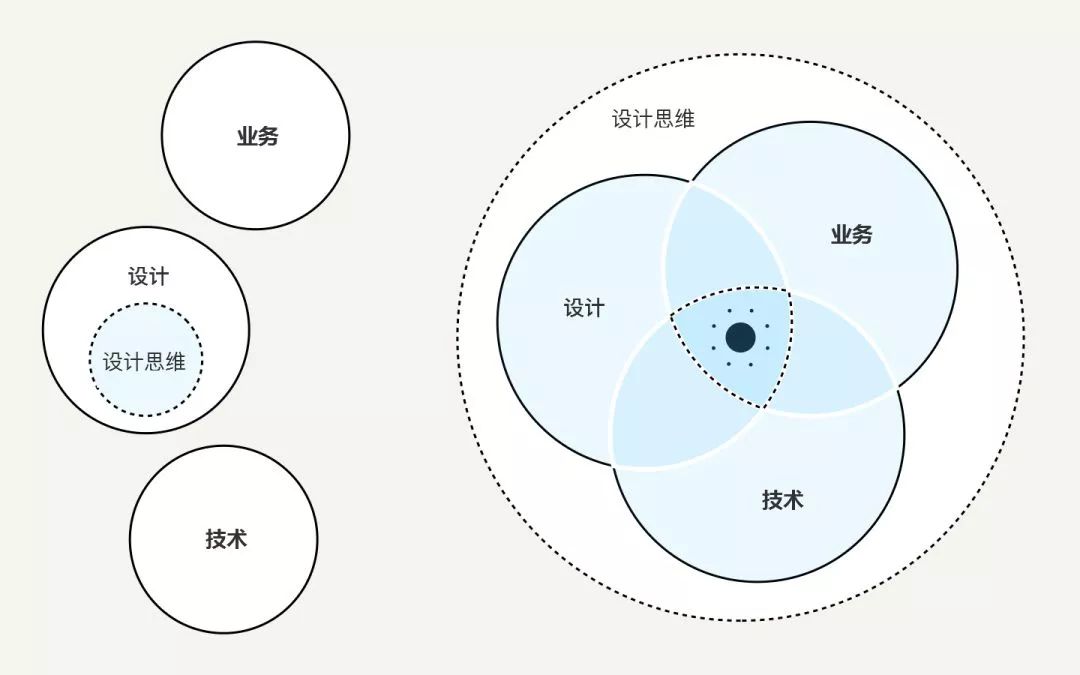 设计思维并没有试图取代商业或技术。设计思维是将产品设计焦点从纯技术的解决方案转移到面向用户的解决方案上。它将理解情景和与用户研究放在实践的核心位置——确定要解决什么问题,哪些指标能够推动成功,以及解决用户问题后对业务的影响。