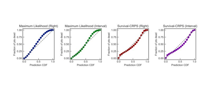 对于事件(例如死亡)发生时间的个性化概率预测在制定决策中是十分重要的,尤其在临床情况下。受到气象学研究的启发,吴恩达团队通过最大化预测分布的锐度(sharpness)来解决这个问题。在回归问题中,研究显示通过优化连续分级概率评分(continuous ranked probability score, CRPS),能够带来锐度更高的预测分布,同时能够保持校准度(calibration)。