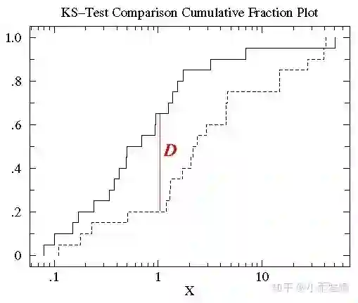 3. 通过两个数据的累积分布图直接最大垂直距离描述两数据的差异