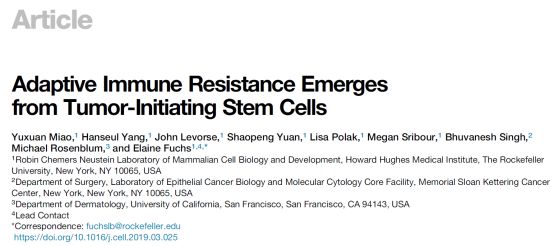 参考文献:Michael Rosenblum,Elaine Fuchs.Adaptive Immune Resistance Emerges from Tumor-Initiating Stem Cells